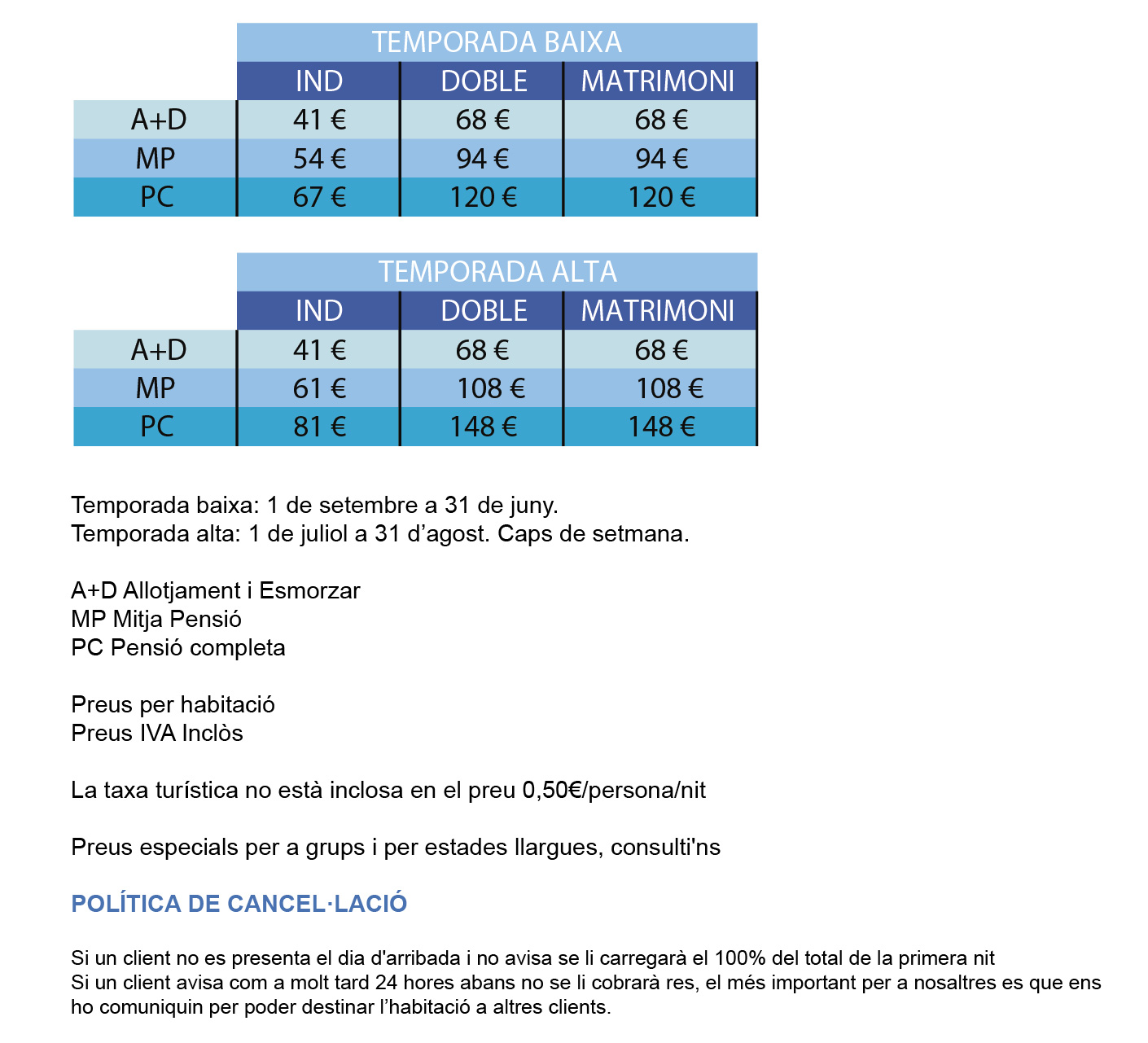 Avís Legal - Política de Privacitat - Política de Cookies - Condicions de reserva